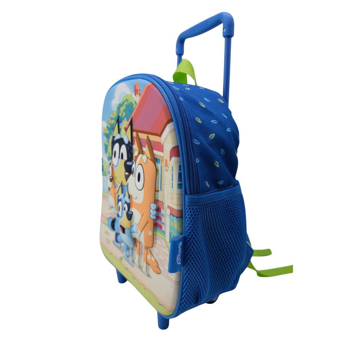 Carrito Preescolar 3D Eva Bluey. Bolsillo lateral. Material eva con personaje en relieve 3D. Material poliester. Con tiradores. Personaje en 3D.