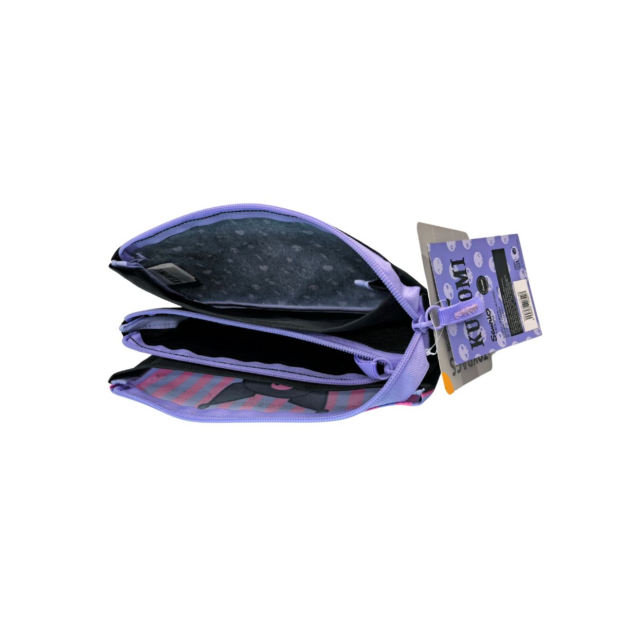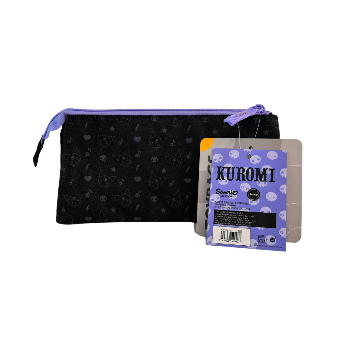 Estuche Triple Kuromi. Interior totalmente forrado y personalizado. Acabados y cremalleras de alta calidad. Buena sensación de tacto. Material poliéster de tela cruzada, durable y transpirable. Resistente y espacioso.
