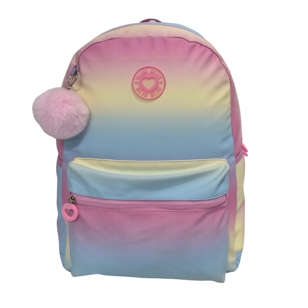 Mochila Americana Blin Blin Gradient Pink. Con accesorio pom pom. Compartimento portalaptop. Interior totalmente forrado. Espaldera y tirantes ajustables y acolchados. Acabados y cremalleras de alta calidad. Buena sensación de tacto. Material repetente al agua. Resistente, espaciosa y organizada.