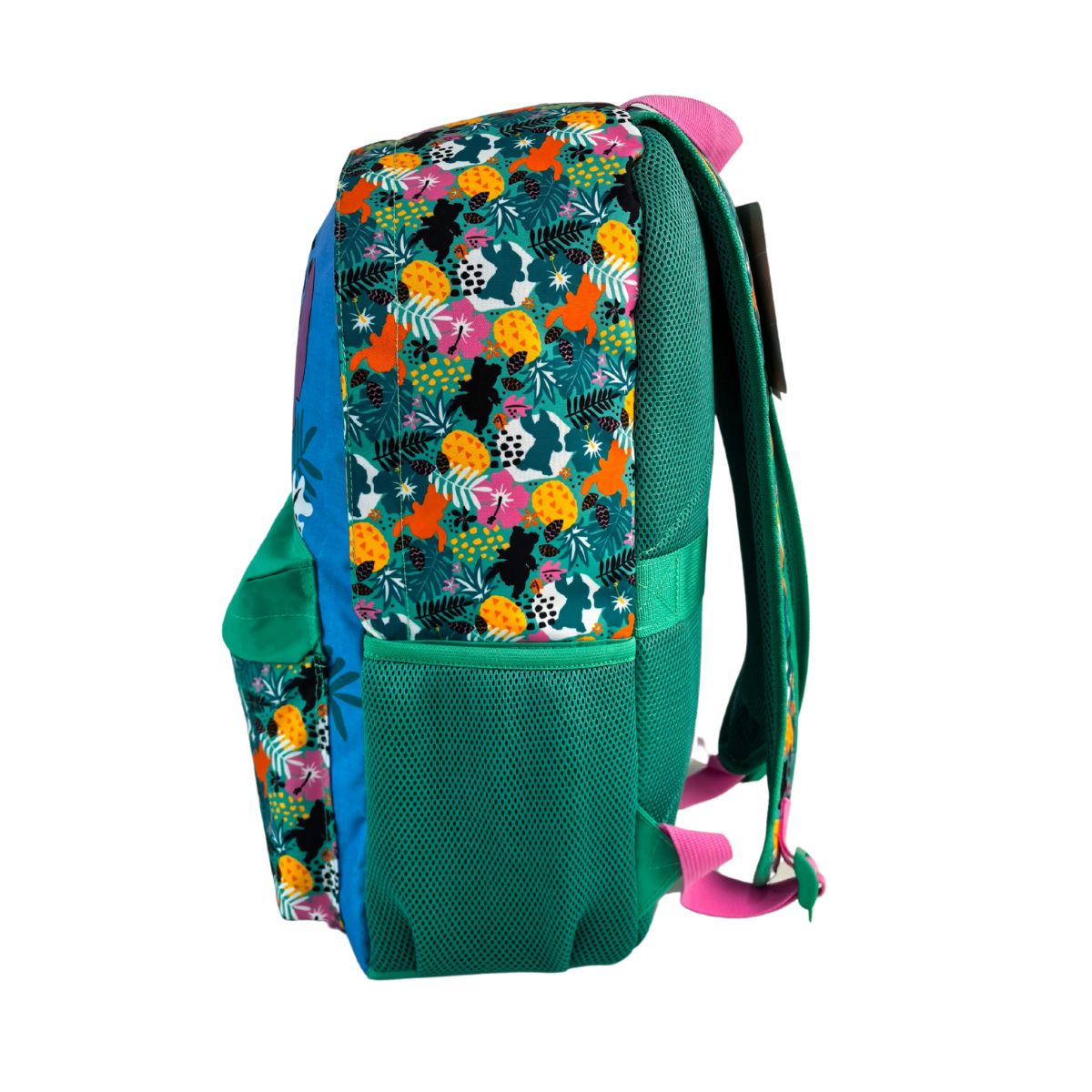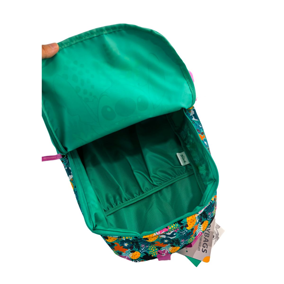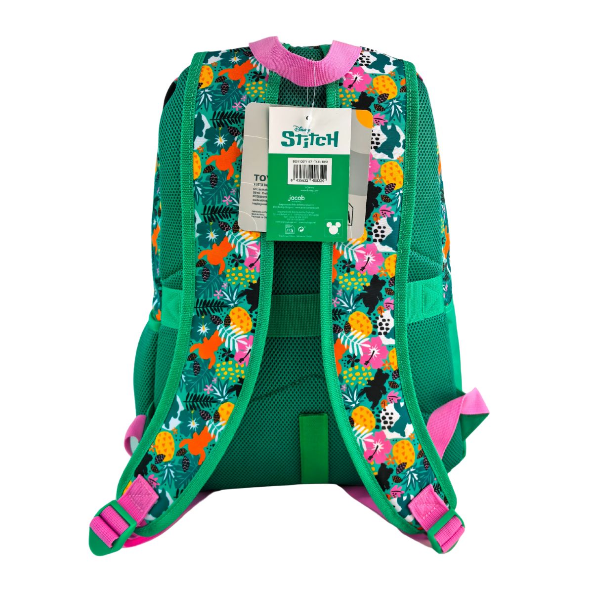Mochila Americano Stitch Tropical, adaptable a carro, espaldera acolchada. Con accesorio Pom-Pom. Compartimento portalaptop. Bolsillo lateral. Personaje Stitch bordado. Interior totalmente forrado y personalizado. Espaldera acolchada. Tirantes ergonómicos, ajustables y acolchados. Acabados y cremalleras de alta calidad. Buena sensación de tacto. Material poliester de tela cruzada, durable y transpirable. Resistente, espaciosa y organizada. Mochila adaptable carro.