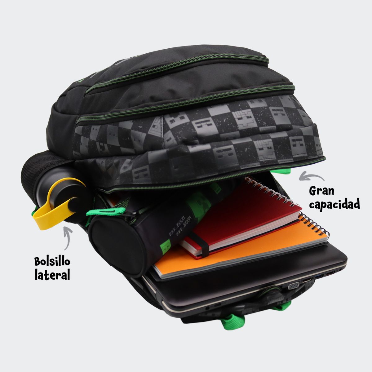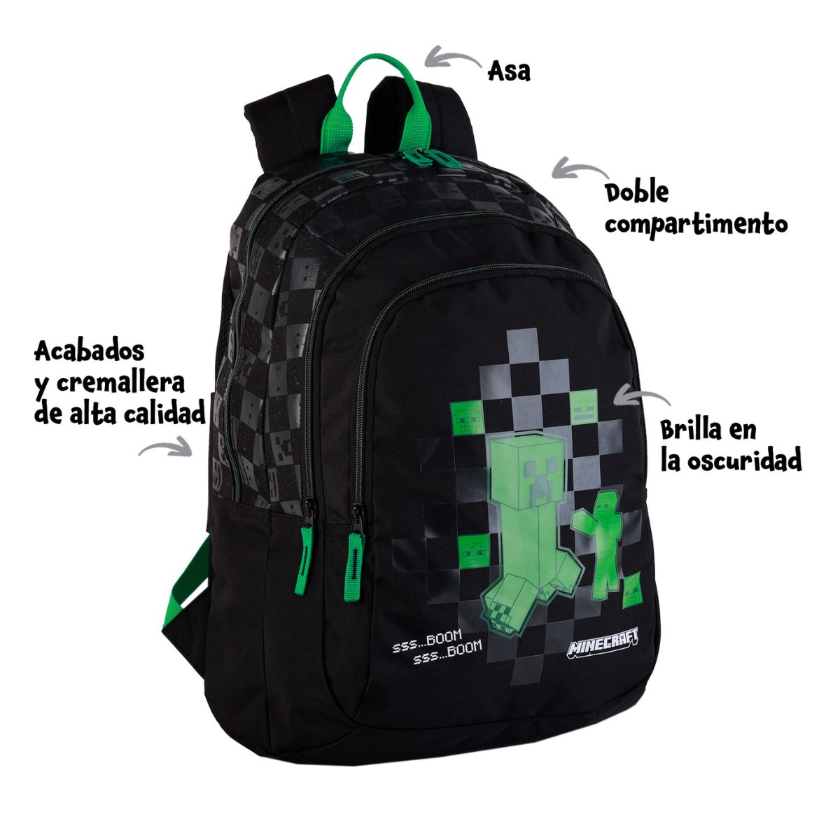 Mochila Minecraft Creeper Doble Compartimento