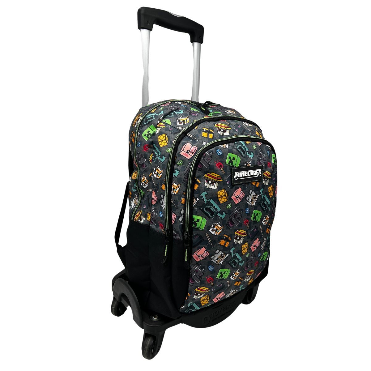 Mochila Minecraft Pixel 25 Doble Compartimento + Carro 360º