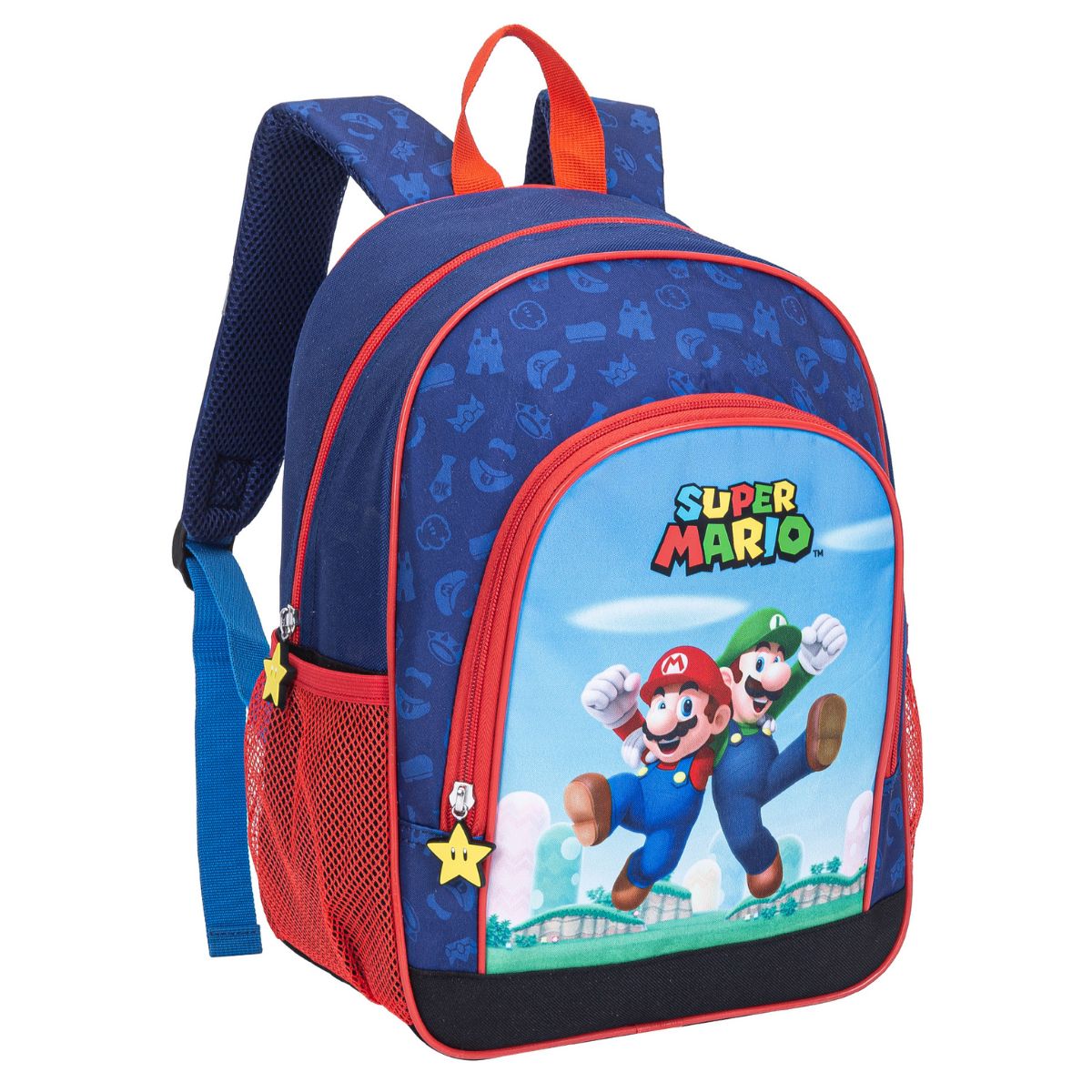 Mochila Super Mario. 2 bolsillos laterales. Interior totalmente forrado y personalizado. Espaldera acolchada. Tirantes ergonómicos, ajustables y acolchados. Acabados y cremalleras de alta calidad. Buena sensación de tacto. Material poliester de tela cruzada, durable y transpirable. Resistente, espaciosa y organizada. Mochila adaptable carro.