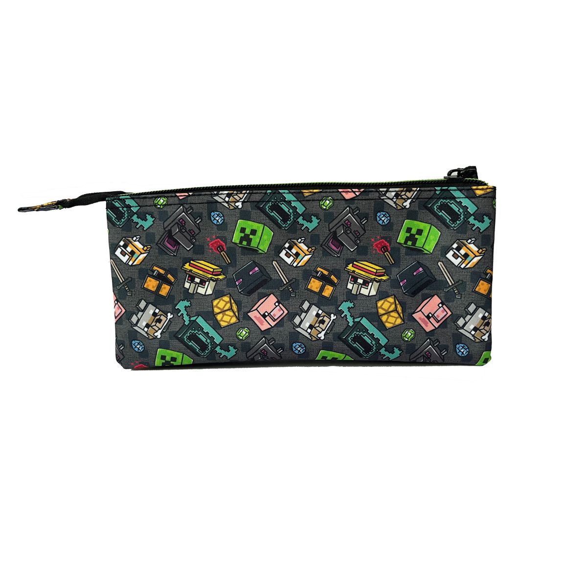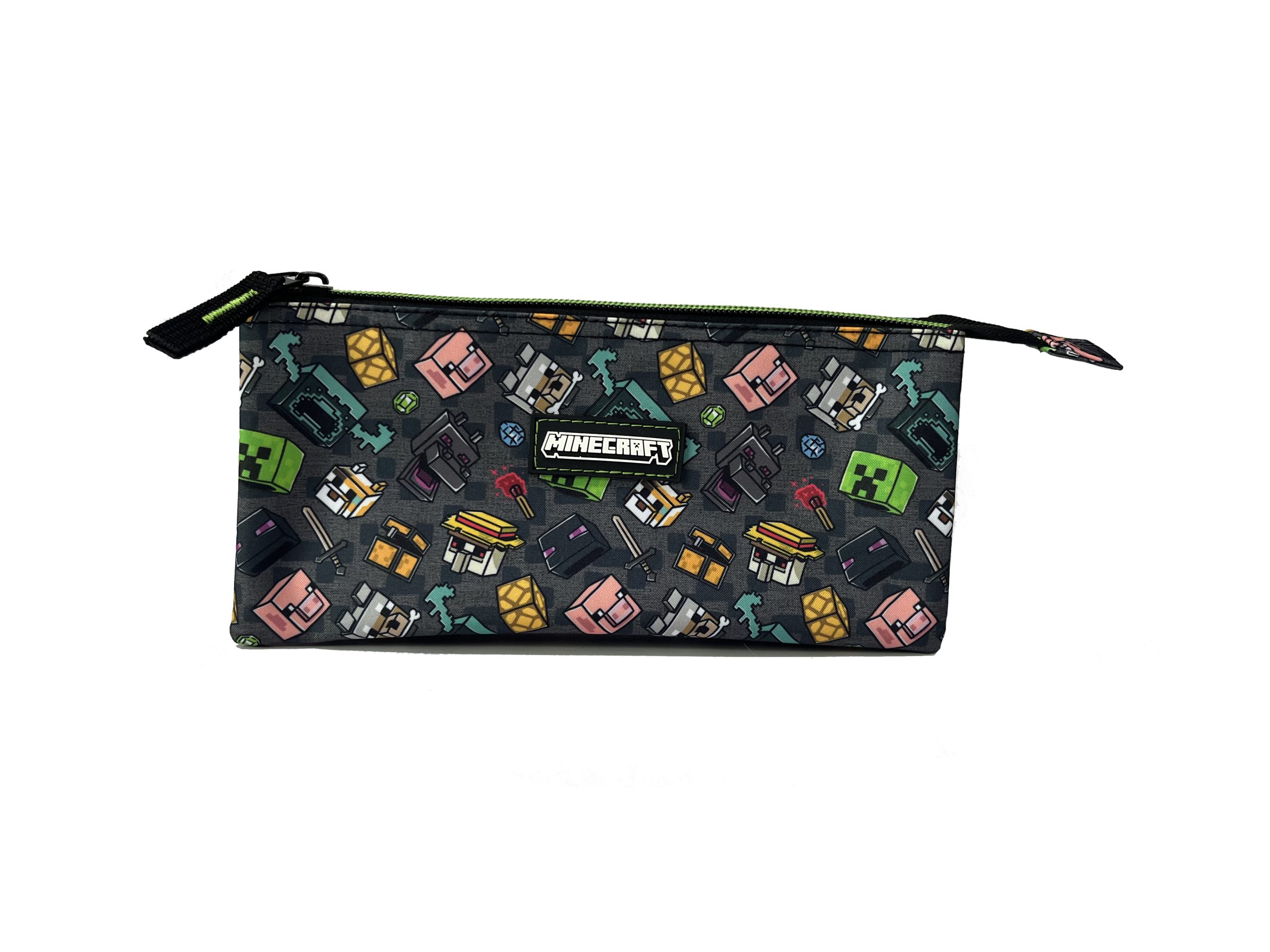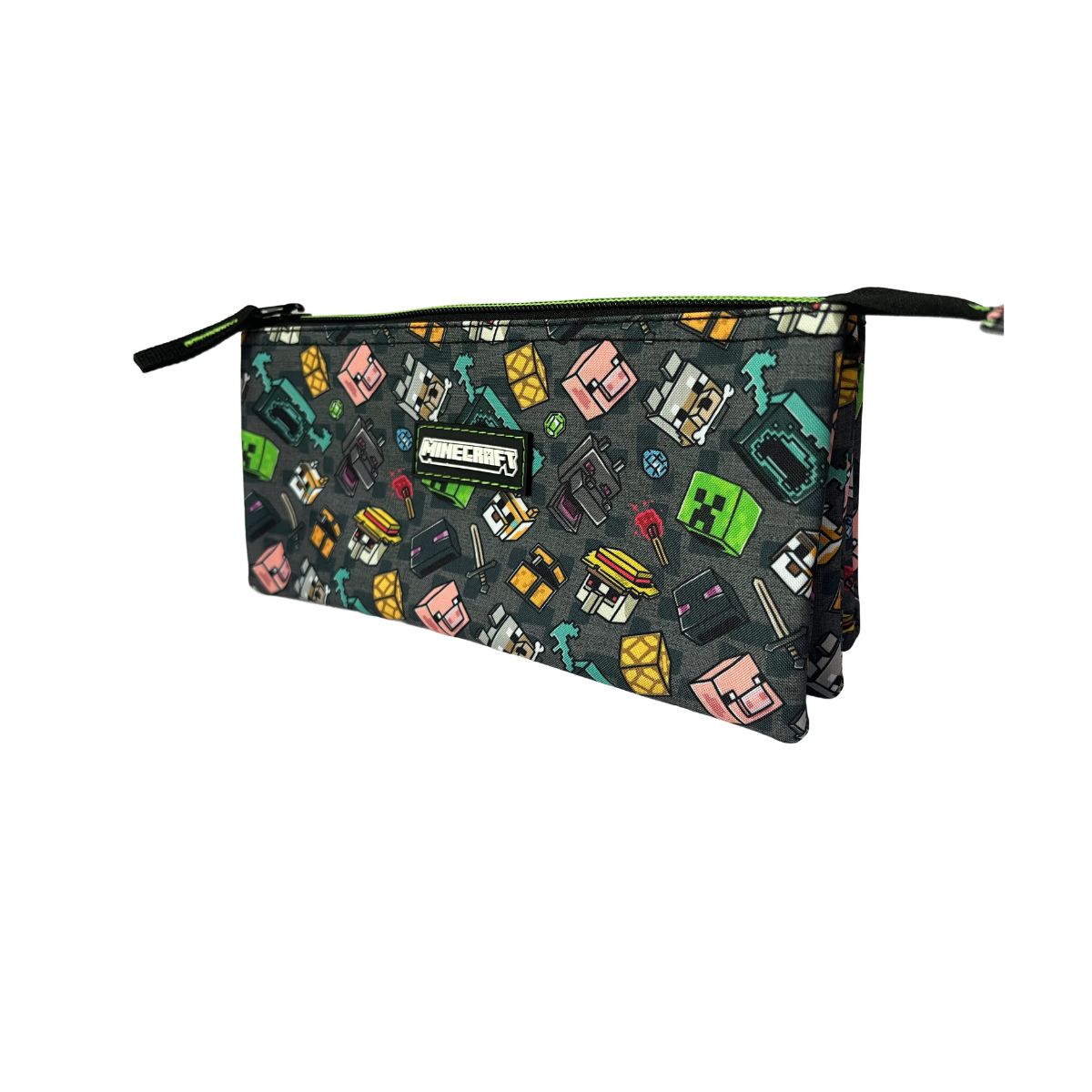 Estuche Triple Minecraft Pixel 25. Interior totalmente forrado y personalizado. Acabados y cremalleras de alta calidad. Buena sensacion de tacto. Material poliester de tela cruzada, durable y transpirable. Resistente y espacioso.