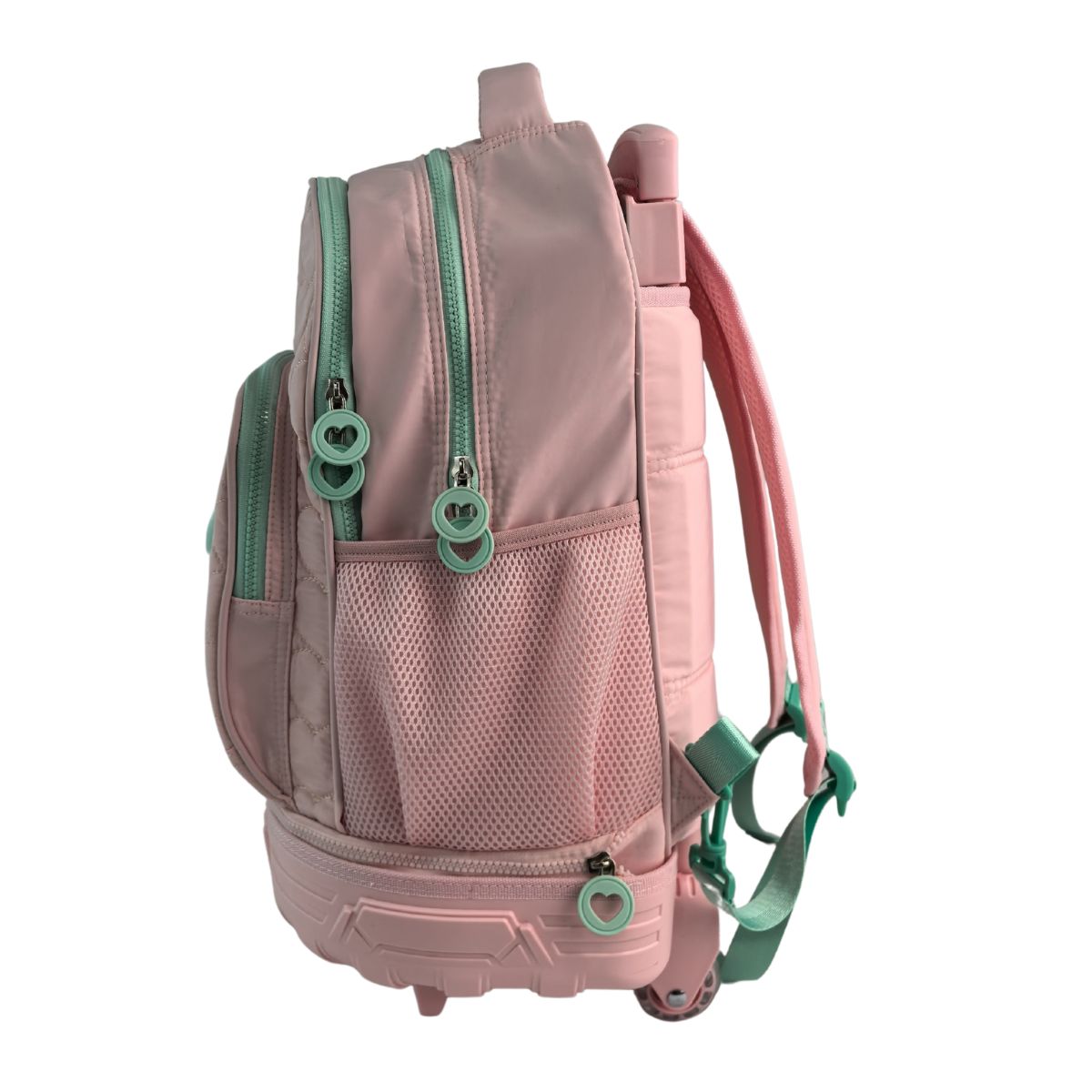 Trolley Fijo Compacto Doble Cuerpo Gran Capacidad Blin Blin Chic. Con accesorios corazon. Interior totalmente forrado. Espaldera y tirantes ajustables y acolchados. Acabados y cremalleras de alta calidad. Buena sensación de tacto. Resistente, espaciosa y organizada. Carro compacto muy resistente. Carro extraíble con cremallera. Dos rueda, stoppers delanteros. Tres compartimentos muy espaciosos.
